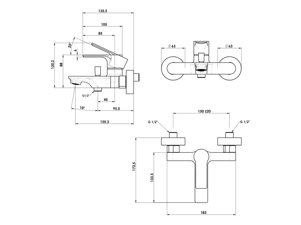 | Instalace: | Nástěnná 150 mm |