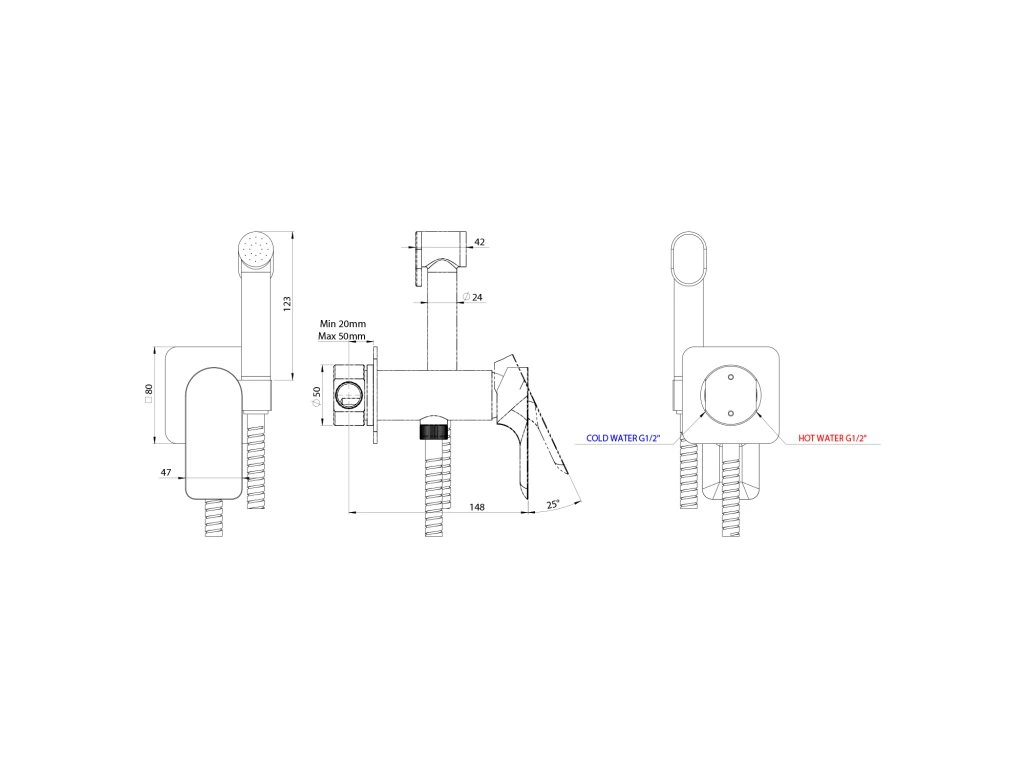 Sapho PAX podomítková bidetová baterie se Stop sprškou, černá mat XA13/15
