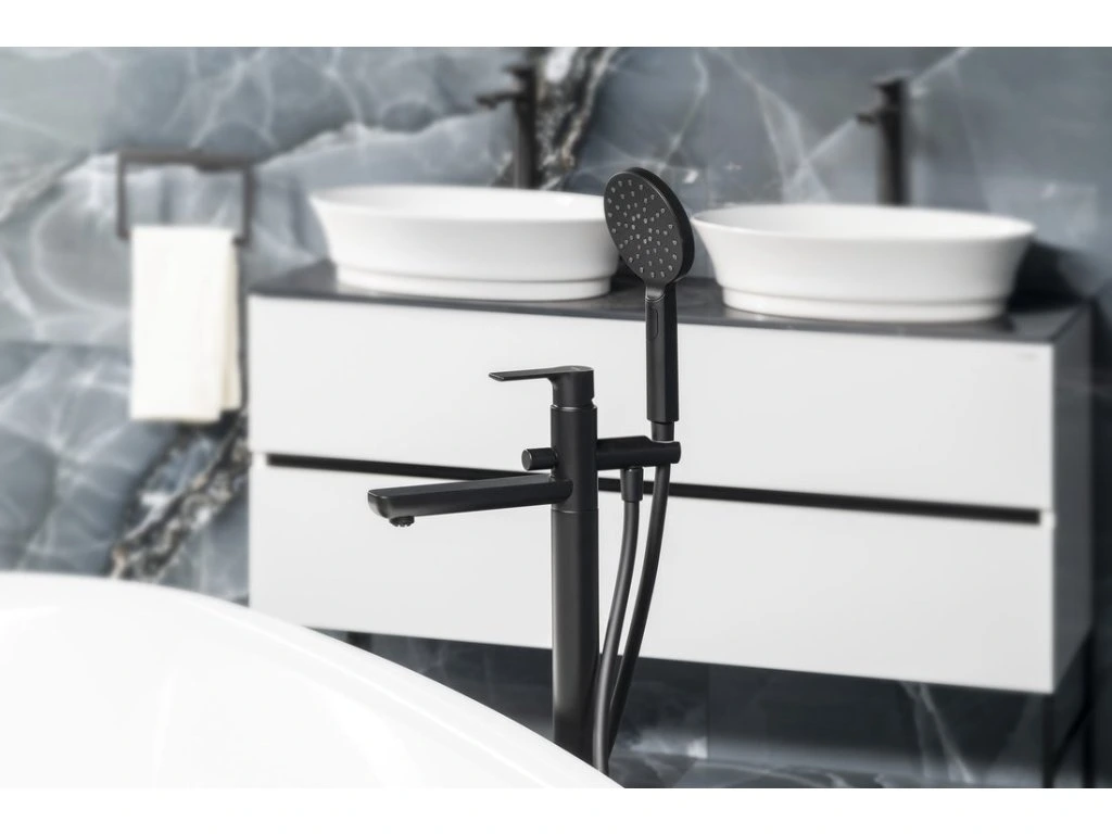 Sapho PAX vanová baterie s připojením do podlahy, černá mat XA21/15