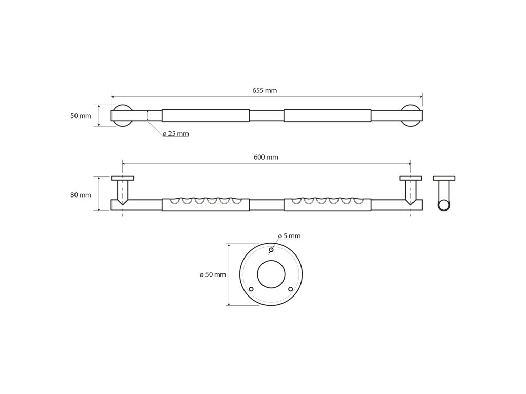 Sapho Pevnostní madlo s protiskluzem 600mm, nerez lesk XR506