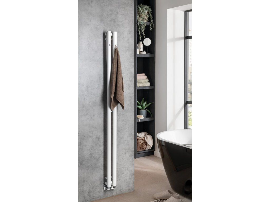 Sapho PILON otopné těleso 122x1800mm, se dvěma háčky pro ručník, bílá mat IZ125T