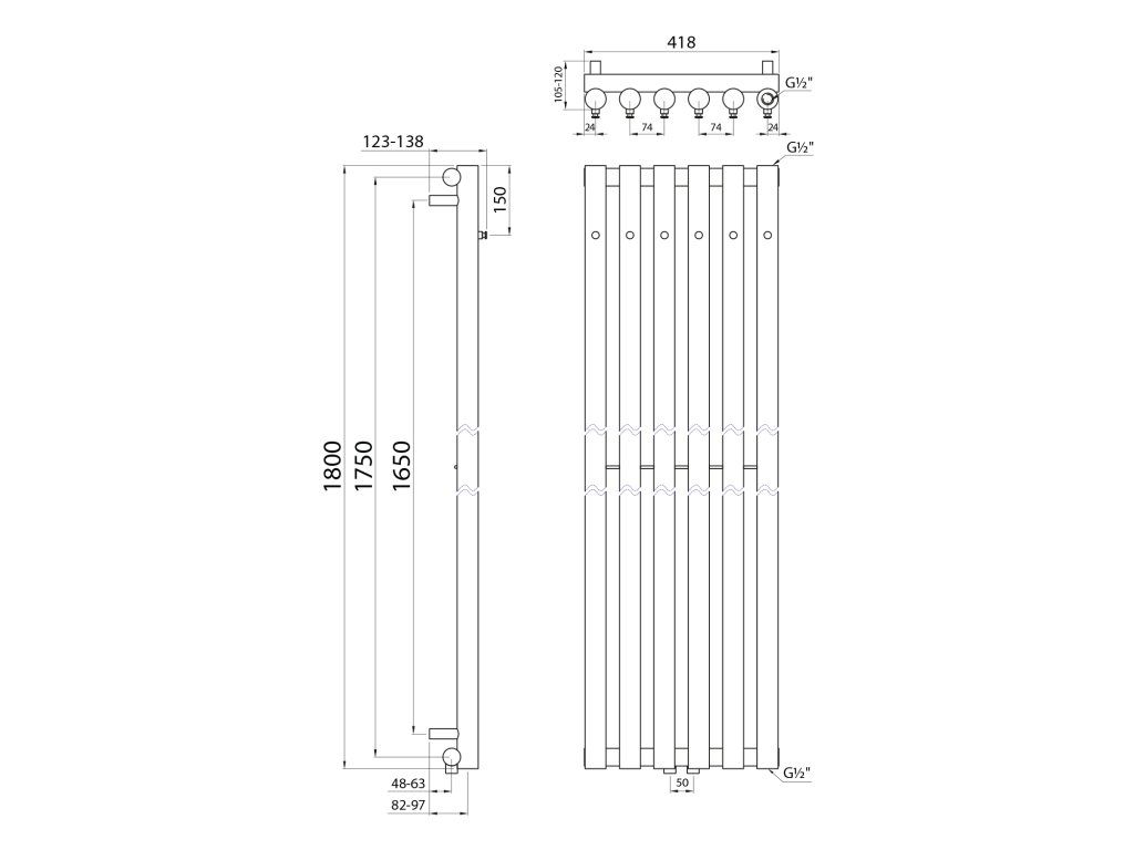 Topení s připojovací roztečí 50 mm