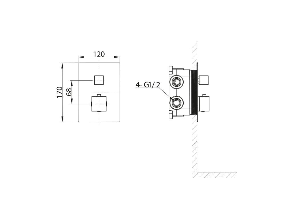 Sapho Podomítková sprchová termostatická baterie, box, 2 výstupy, černá mat 1102-32B
