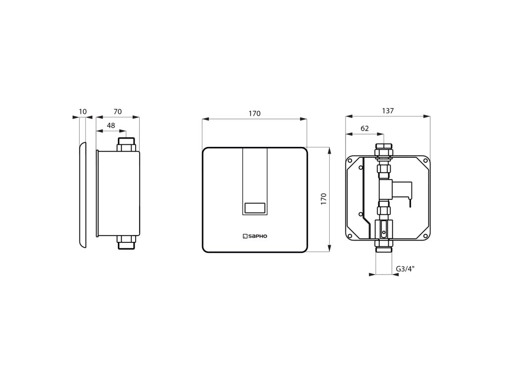 Sapho Podomítkový automatický splachovač pro urinál 6V (4xAA), černá PS006B
