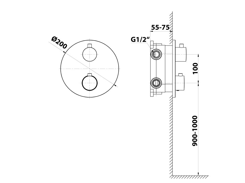 Sapho Podomítkový sprchový set s termostatickou baterií, box, 2 výstupy, černá mat RH399B-01