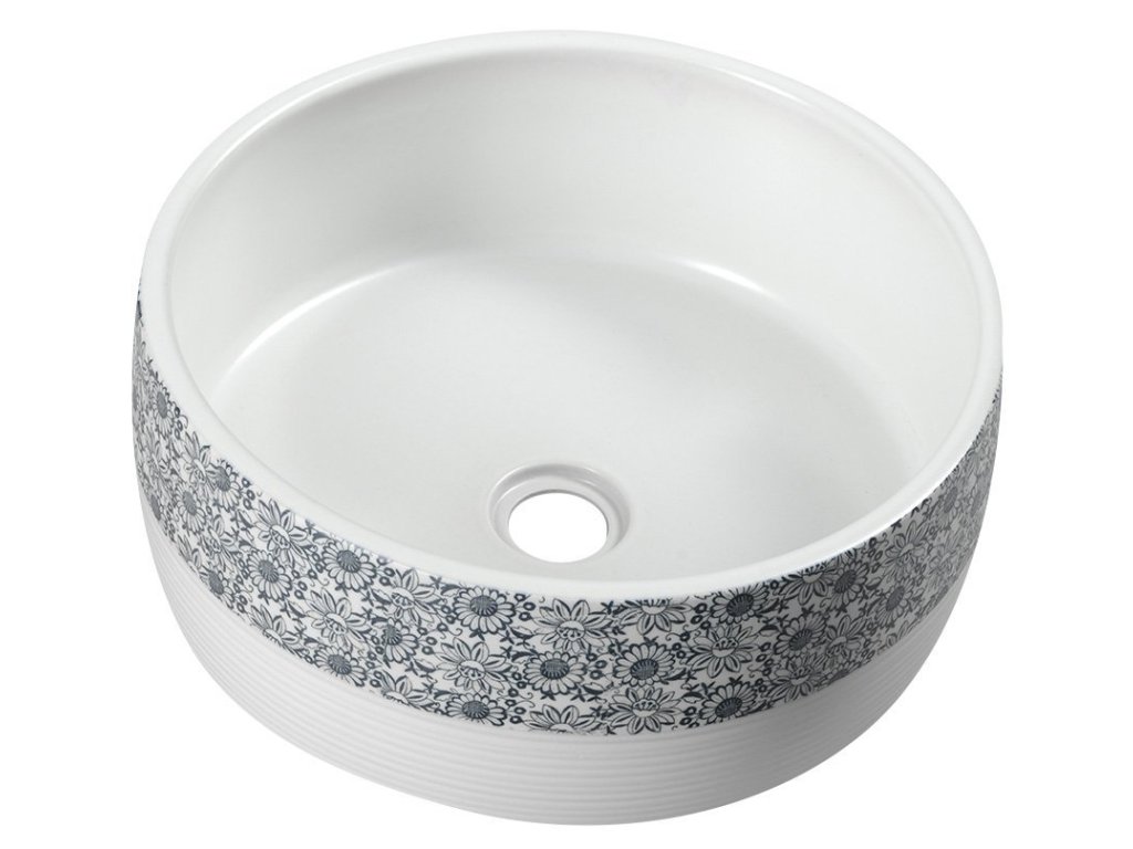 Sapho PRIORI keramické umyvadlo na desku, Ø 41 cm, bílá s modrým vzorem PI027