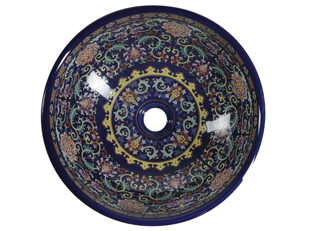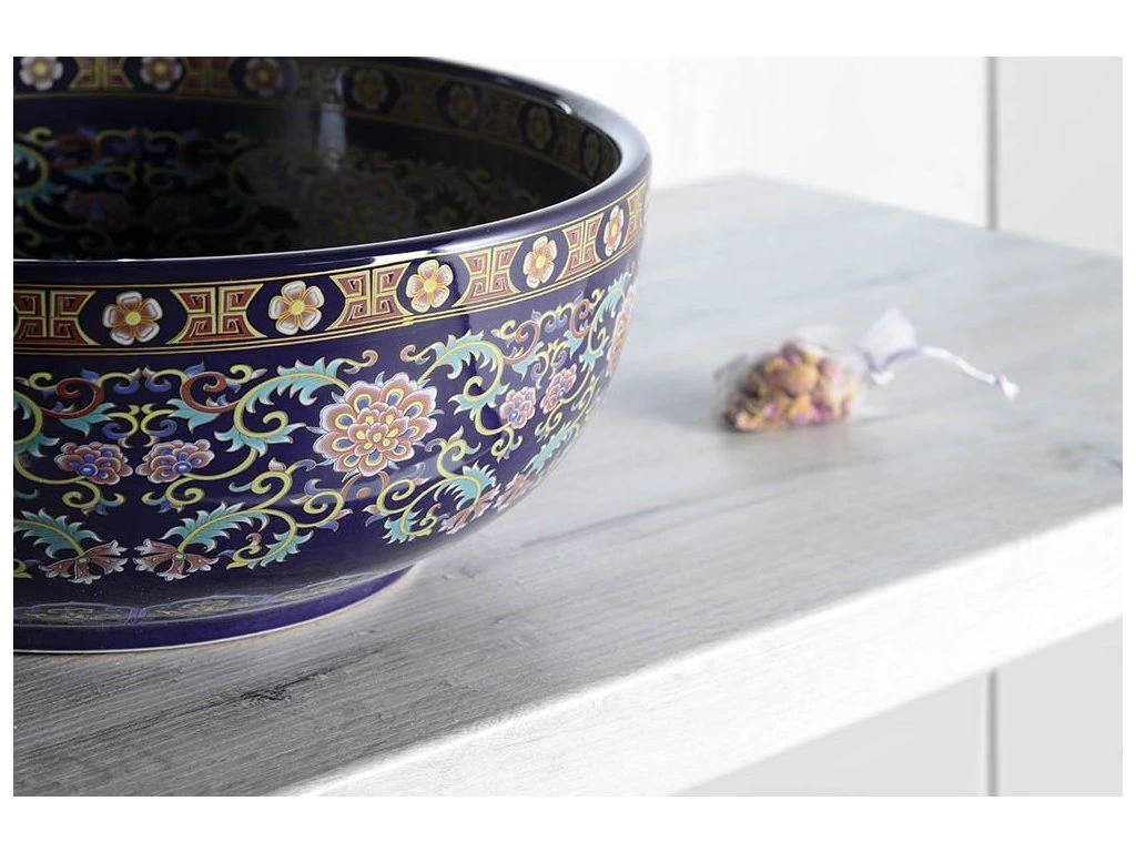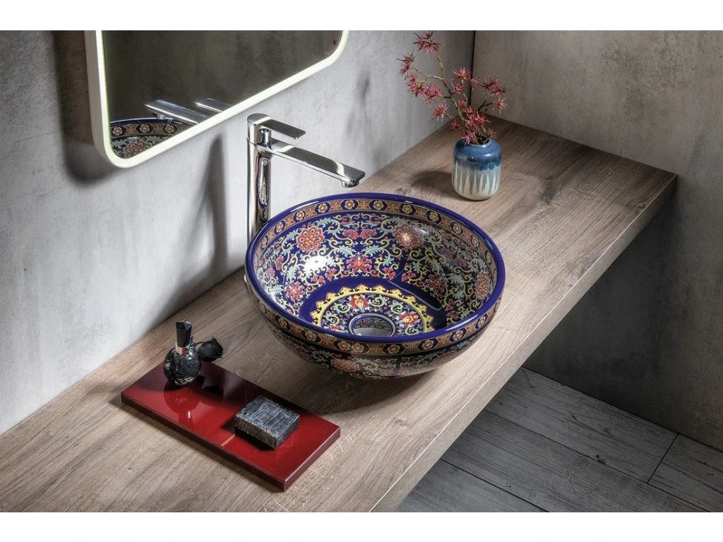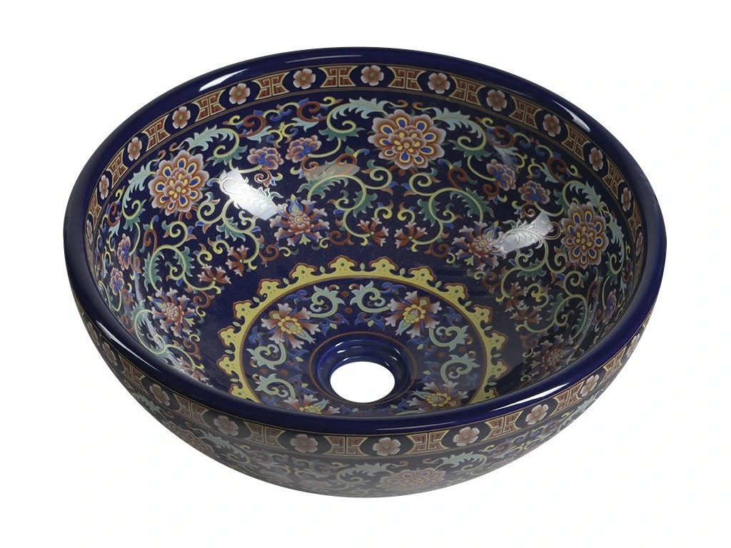 Sapho PRIORI keramické umyvadlo na desku, Ø 41 cm, fialová s ornamenty PI022