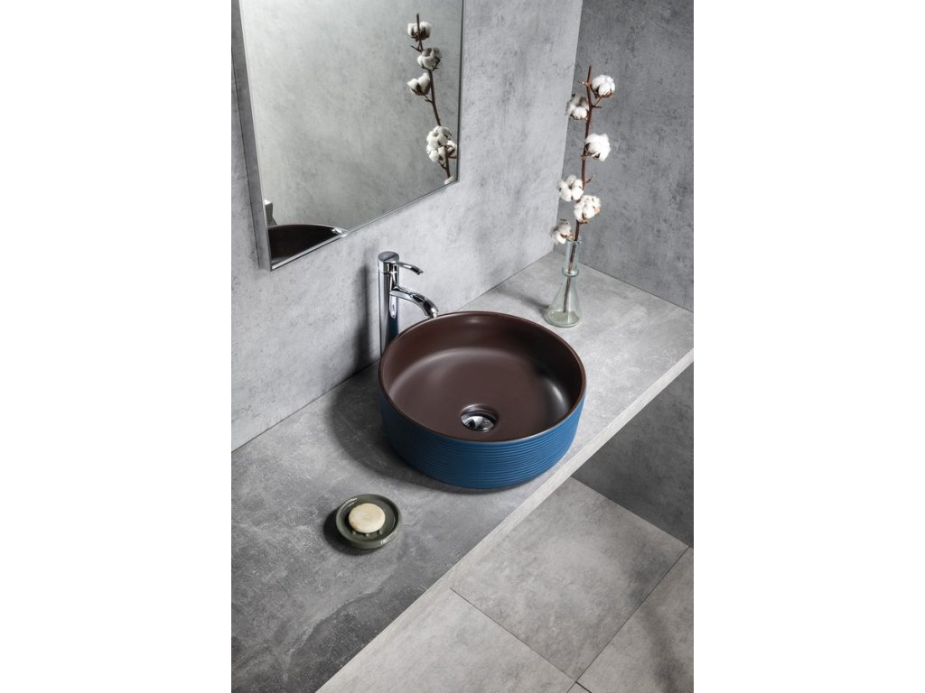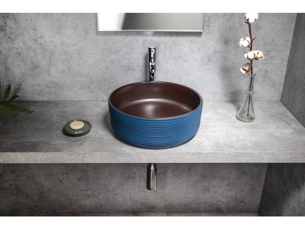 Sapho PRIORI keramické umyvadlo na desku, Ø 41 cm, modrá/hnědá PI033