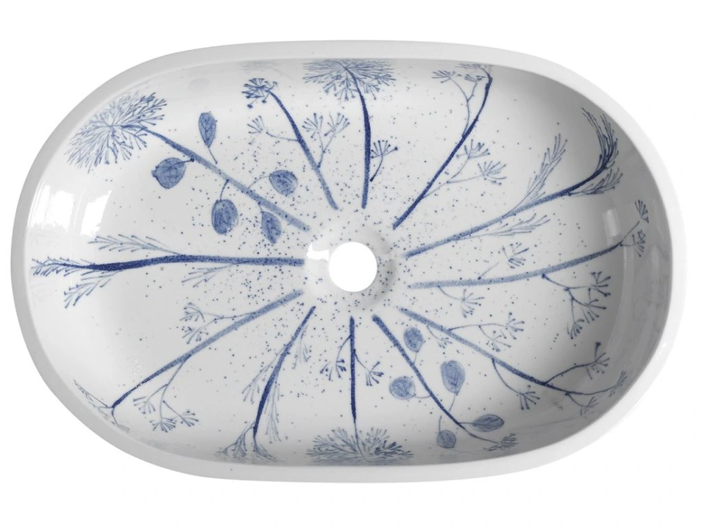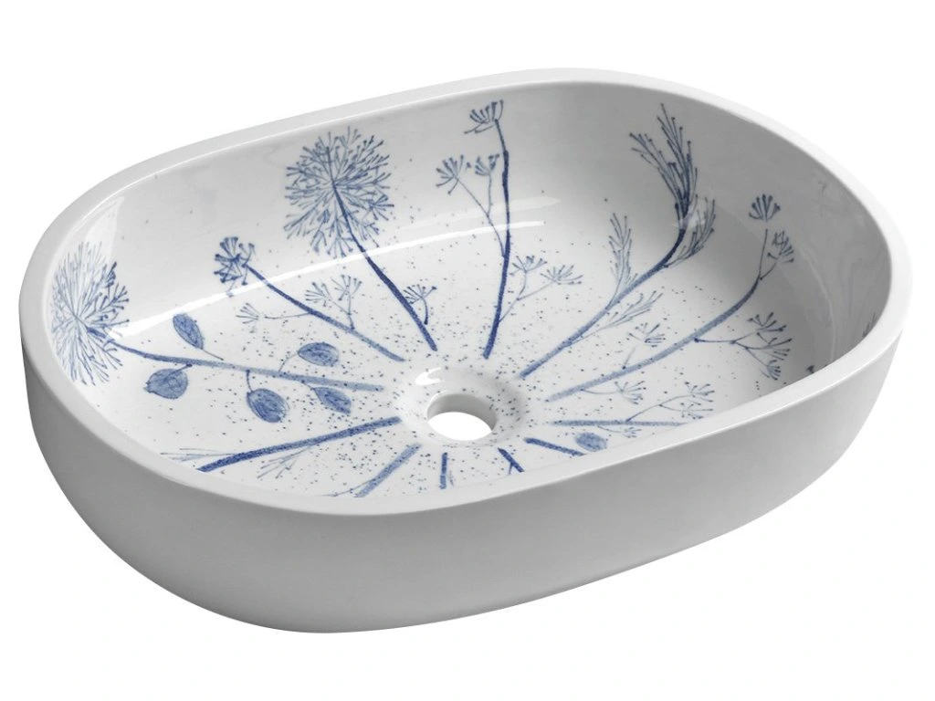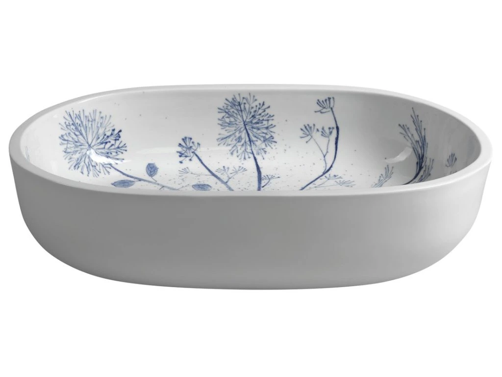 Sapho PRIORI keramické umyvadlo na desku, 60x40cm, bílá s modrým vzorem PI029