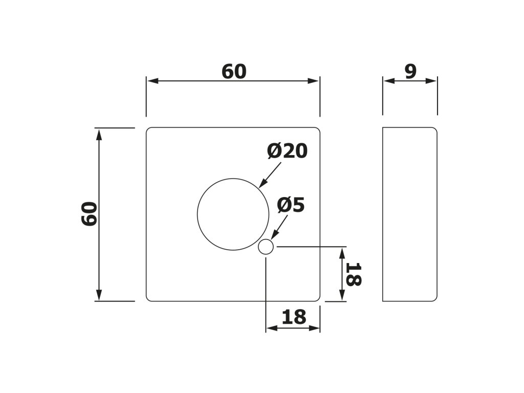 Sapho Rozeta hranatá 60/25mm, výška 9mm, chrom RS331