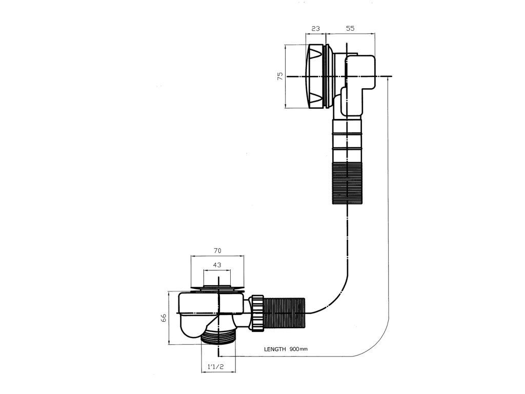Sapho SENATOR vanová souprava s bovdenem, délka 900mm, zátka 72mm, nerez mat VR119028