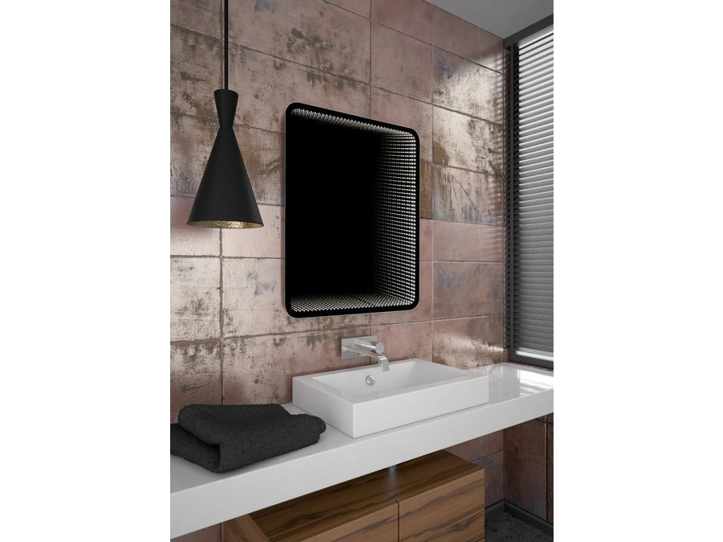 Zrcadlo s 3D efektem hloubky vytváří pocit nekonečného pohledu. Při vypnutí osvětlení plní zrcadlo funkci běžného zrcadla.
