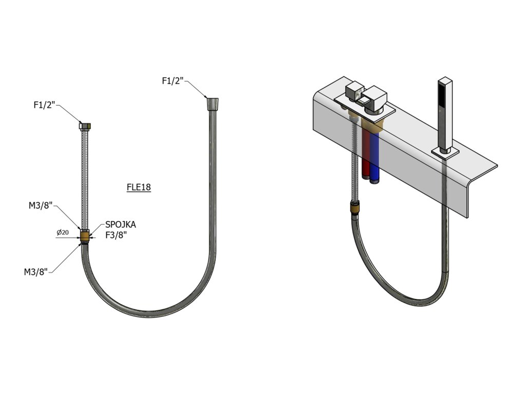 Sapho SET sprchové hadice pro výsuvné sprchy z vany, F1/2"- F1/2", 275cm, chrom FLE18
