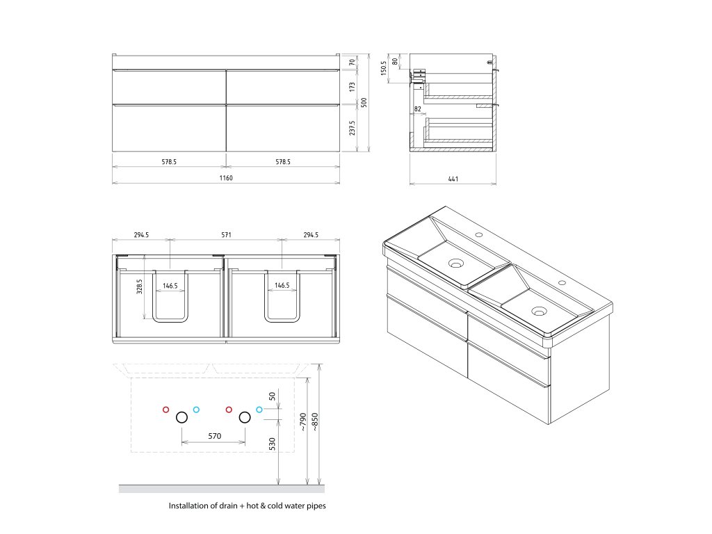 Nábytek je dodáván ve smontovaném stavu, připraven k okamžité instalaci. Nábytek instalujte na rovnou stěnu. Při zkroucení korpusu skříňky může dojít k poruše funkce dovíracích mechanismů. Nevystavujte nábytek trvalé vlhkosti a styku s vodou. Po použití koupelnu řádně odvětrejte. Proti případnému zatékání do skříňky použijte silikonový tmel.