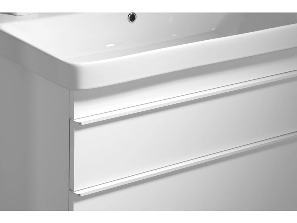Série SITIA nabízí moderní vzhled díky tenké úchytce v matné bílé nebo černé barvě, umístěné po celé délce hrany zásuvek či dvířek. Použitím keramických umyvadel THALIE vytvoříme nadčasový koupelnový nábytek. Zásuvky jsou vybaveny výsuvy s pomalým dojezdem a automatickým dovřením, dvířka mají kování s tlumeným dovíráním. Horní i spodní zásuvky lze doplnit organizérem nebo miskami LINDO pro uložení předmětů každodenní potřeby. Série dále nabízí 2 rozměry doplňkových skříněk ve stejném designu.