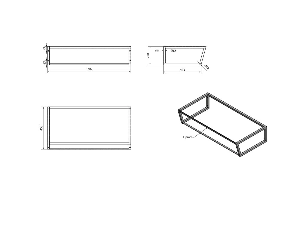 Sapho SKA konzole pod umyvadlo/desku 900x200x460mm, černá mat SKA203
