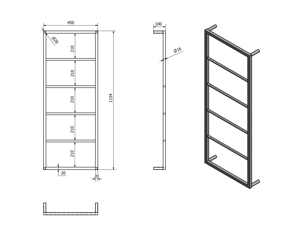 Sapho SKA nástěnný sušák ručníků 450x1150x100mm, černá mat SKA501