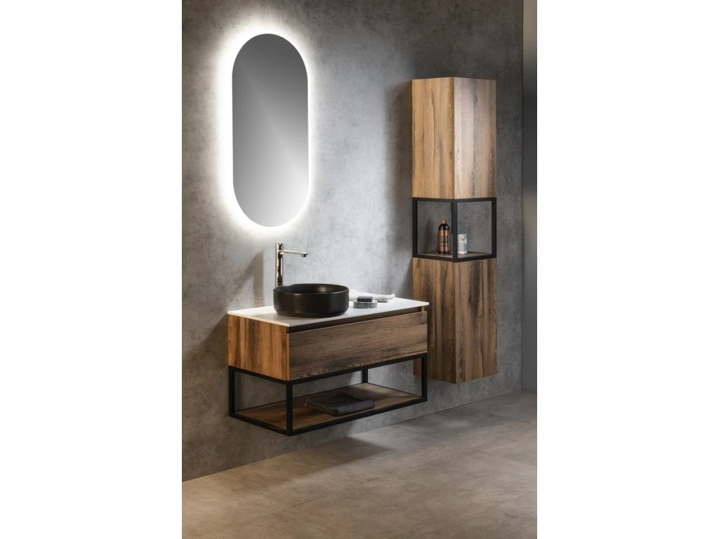 Konstrukce ze série SKARA jsou vhodné do koupelen zařizovaných v moderním i industriálním stylu. Skvěle je doplní vysoká skříňka SKARA ve stejném dekoru nebo skříňky a zrcadla TREOS s rámem v dřevěném dekoru. Perfektní je i kombinace s podsvíceným zrcadlem SORT v černém hliníkovém rámu.