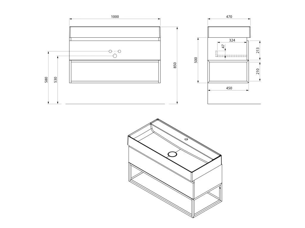 Závěsné konstrukce v šířkách 60, 80 a 100 cm jsou jsou určeny pro umyvadlo TWIG z litého mramoru v bílé barvě. V nabídce jsou i konstrukce určené výhradně k instalaci s rockstone deskou v šířkách 70 až 100 cm.