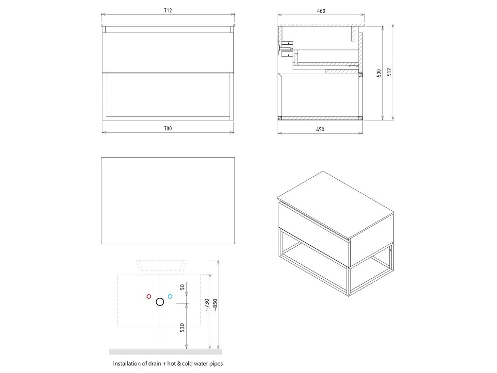 Závěsné konstrukce v šířkách 60, 80 a 100 cm jsou jsou určeny pro umyvadlo TWIG z litého mramoru v bílé barvě. V nabídce jsou i konstrukce určené výhradně k instalaci s rockstone deskou v šířkách 70 až 100 cm.