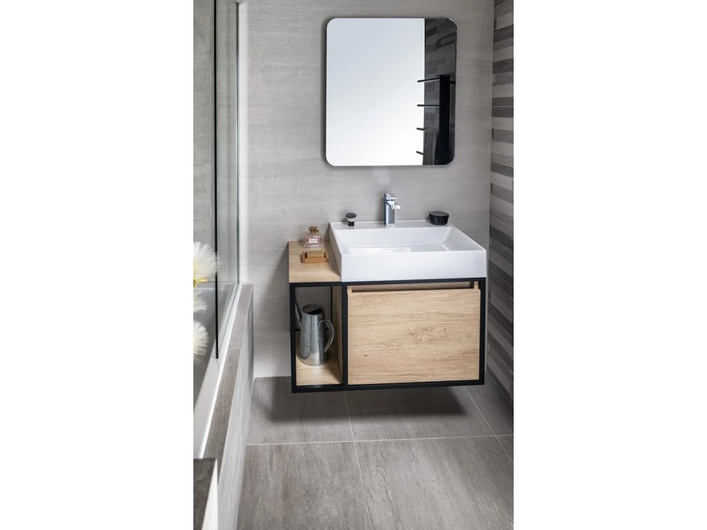 Konstrukce ze série SKARA jsou vhodné do koupelen zařizovaných v moderním i industriálním stylu. Skvěle je doplní vysoká skříňka SKARA ve stejném dekoru nebo skříňky a zrcadla TREOS s rámem v dřevěném dekoru. Perfektní je i kombinace s podsvíceným zrcadlem SORT v černém hliníkovém rámu.