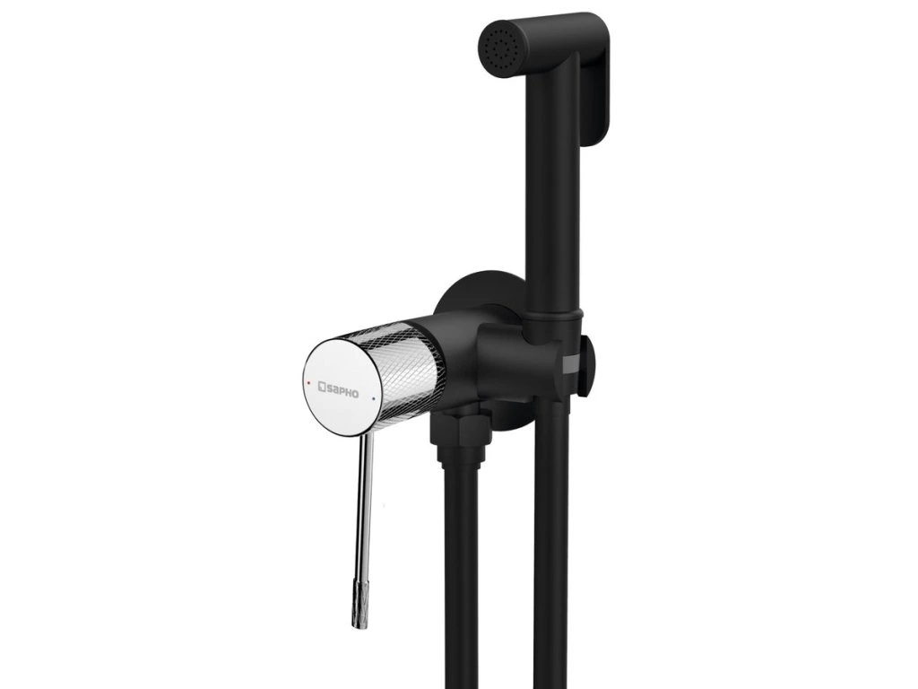 Sapho SOLARIS podomítková bidetová baterie se Stop sprškou, kulatá, černá mat/chrom WD040BC
