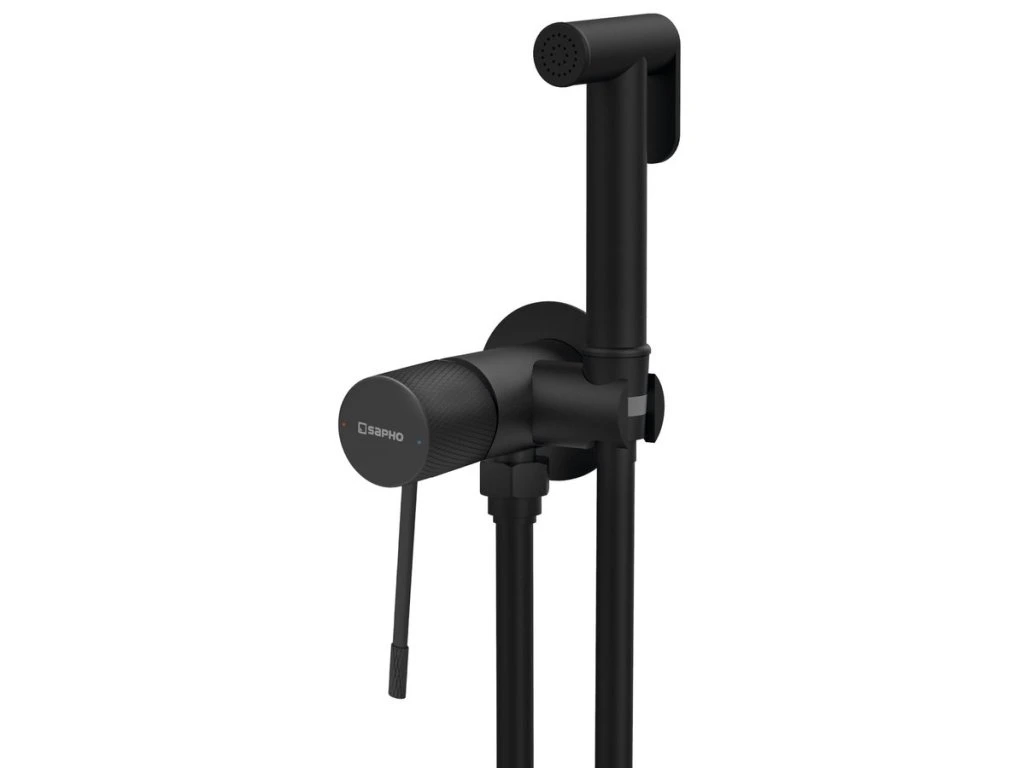 Sapho SOLARIS podomítková bidetová baterie se Stop sprškou, kulatá, černá mat WD040B