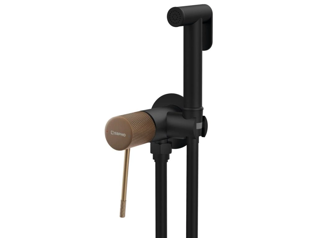 Sapho SOLARIS podomítková bidetová baterie se Stop sprškou, kulatá, černá/měď mat WD040PG