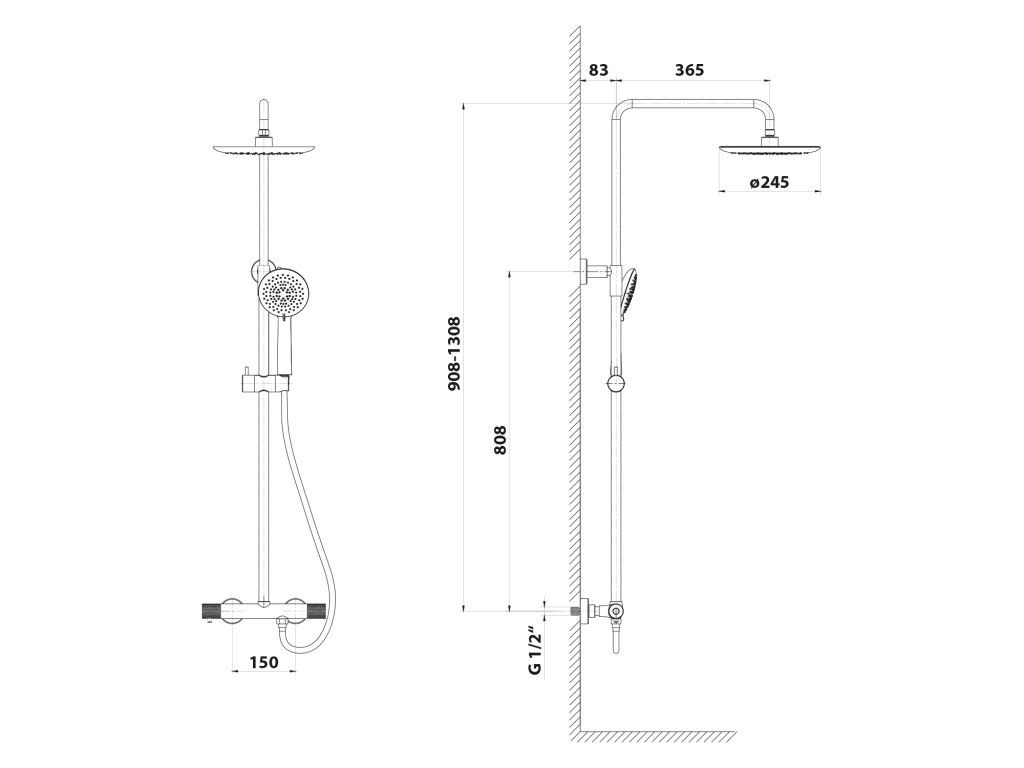 | Instalace: | Nástěnná 150 mm |