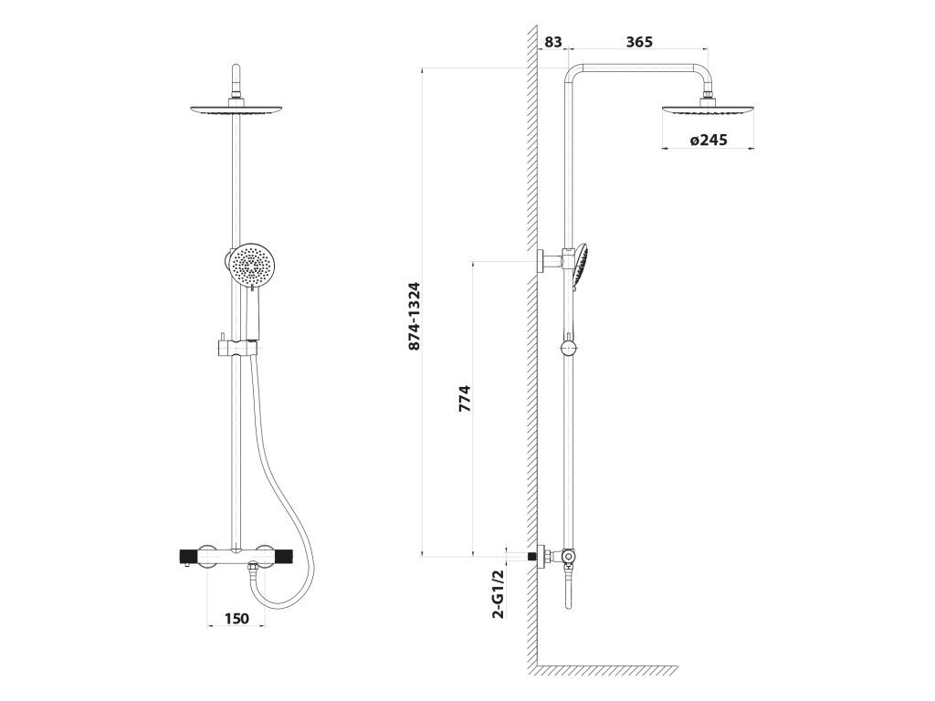 | Instalace: | Nástěnná 150 mm |