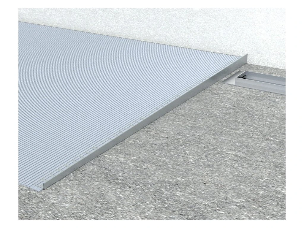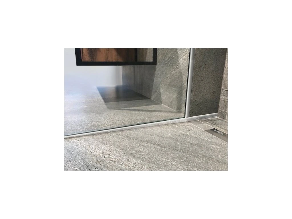 - Spádovací lišta pomáhá zakrýt přechod vzniklý během výstavby sprchového koutu mezi spádovanou a nespádovanou částí podlahy.