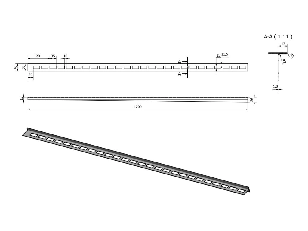 Sapho Spádová lišta, pravá, výška 12mm, délka 1200mm, nerez mat SPD1212-P