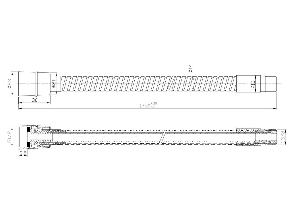 Sapho Sprchová hadice pro výsuvné sprchy, F1/2"-M3/8", 175cm, chrom FLE16