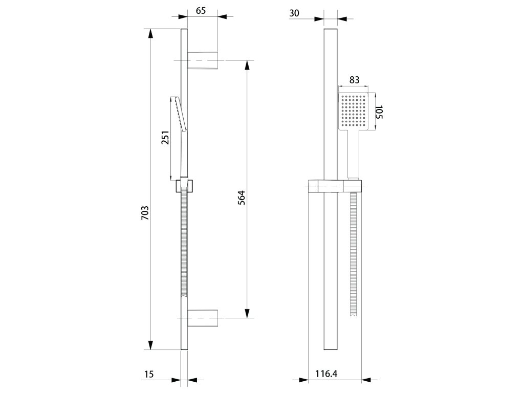 Sapho Sprchová souprava hranatá, posuvný držák 700mm, černá mat SC615