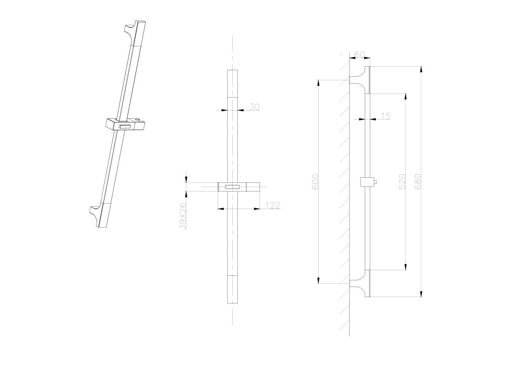 Sapho Sprchová tyč, posuvný držák, hranatá, 680mm, ABS/chrom 1206-09