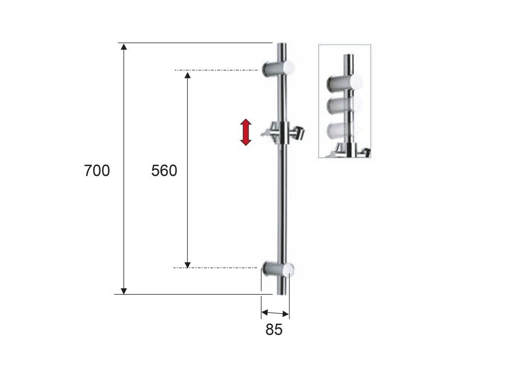 Sapho Sprchová tyč, posuvný držák, kulatá, 700mm, černá mat SC015