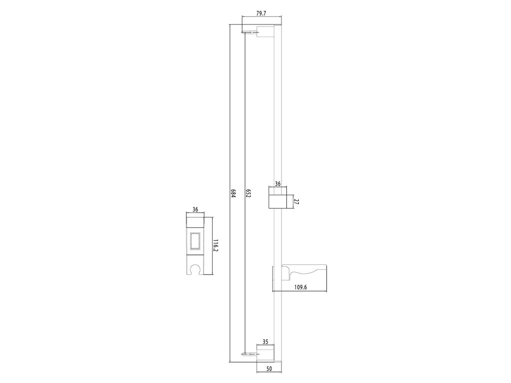 Sapho Sprchová tyč s mýdlenkou, posuvný držák, hranatá, 684mm, ABS/chrom 1206-07