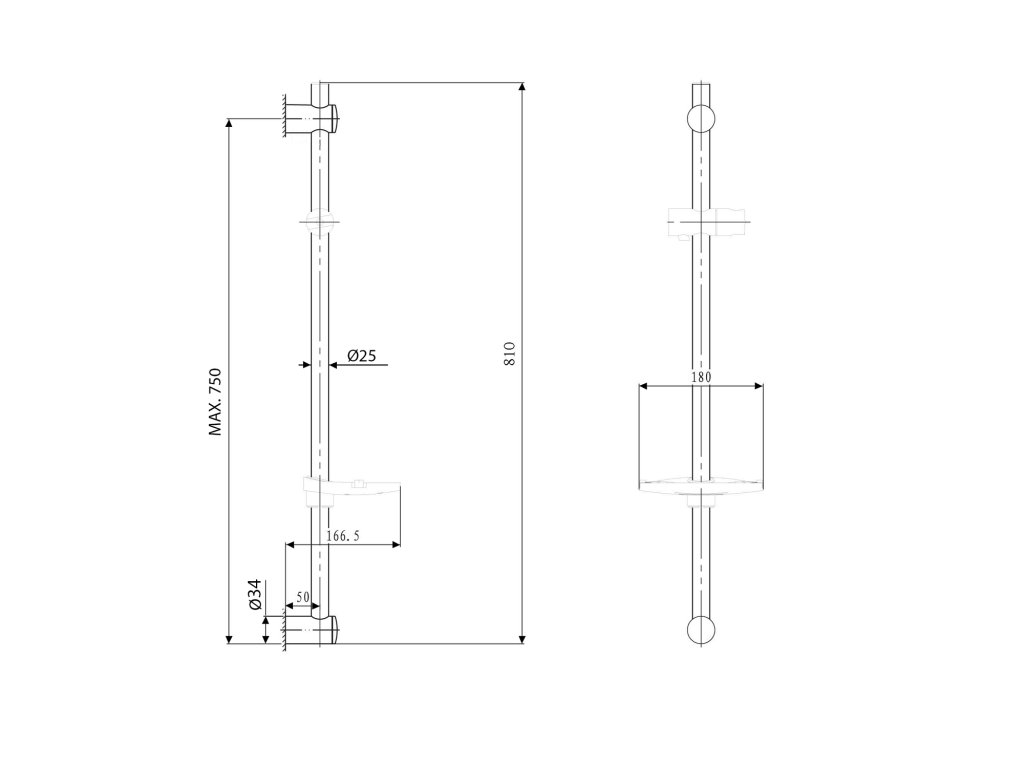 Sapho Sprchová tyč s mýdlenkou, posuvný držák, kulatá, 810mm, chrom 1206-06