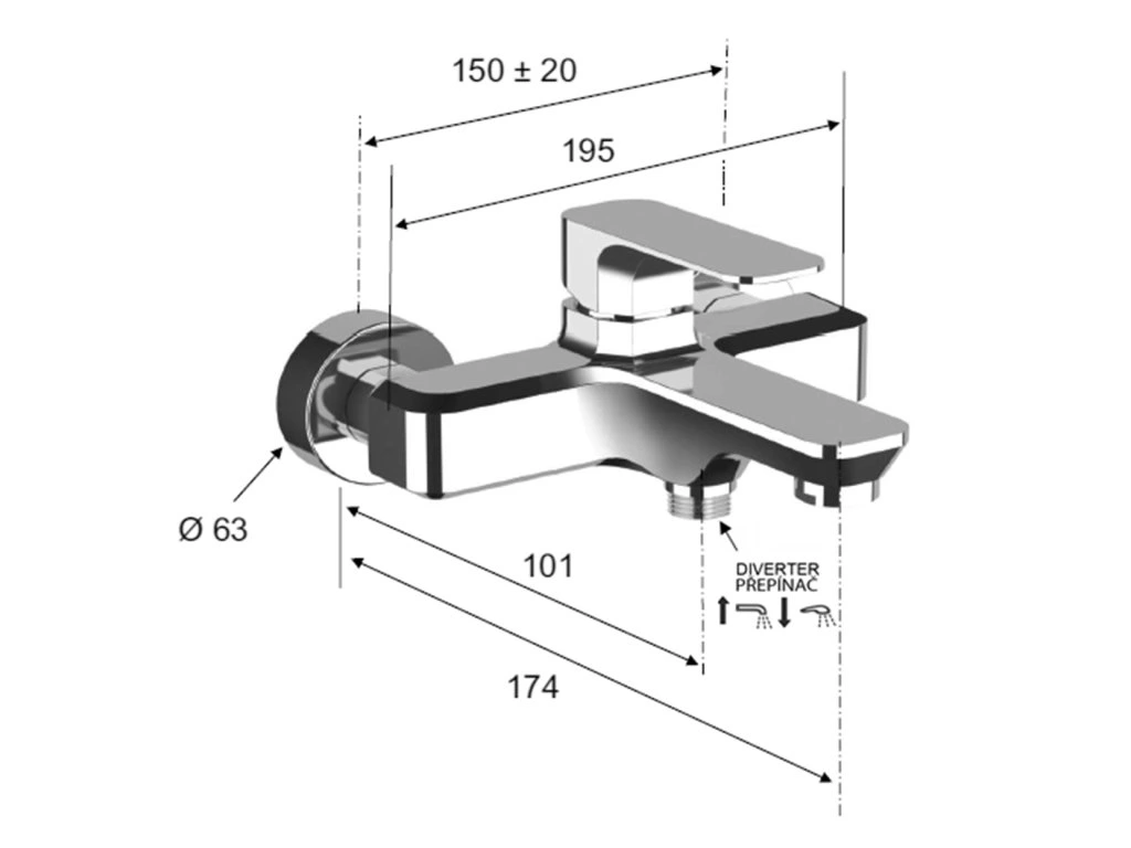 Sapho SPY nástěnná vanová baterie, bílá mat PY10/14