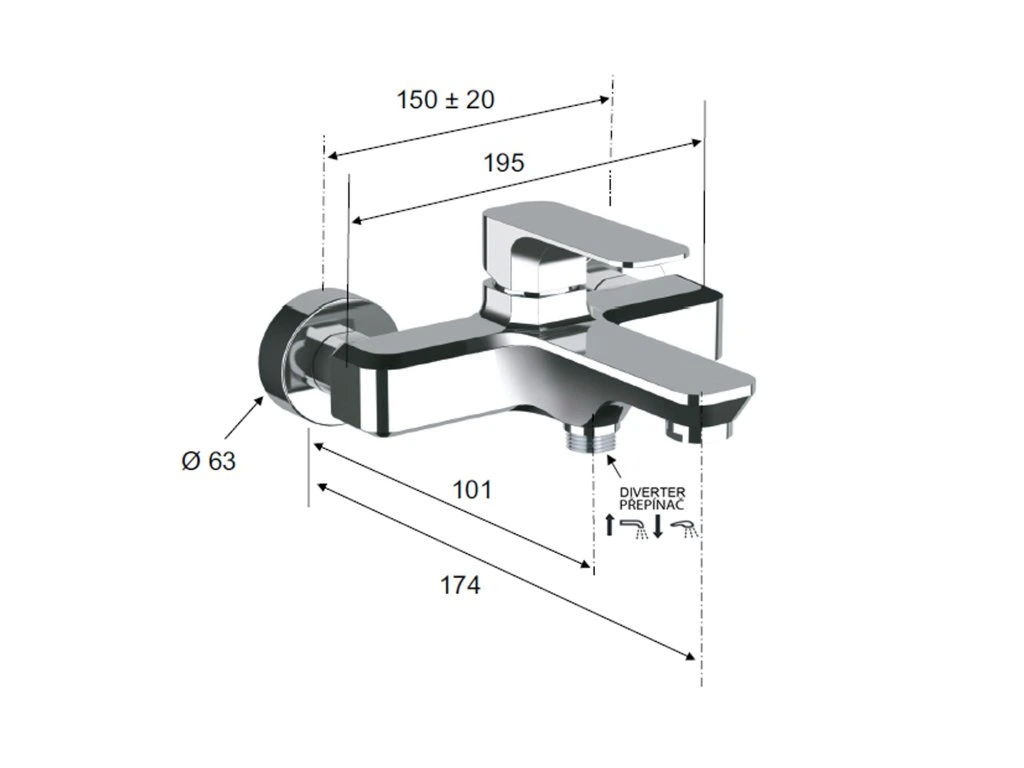 | Instalace: | Nástěnná 150 mm |