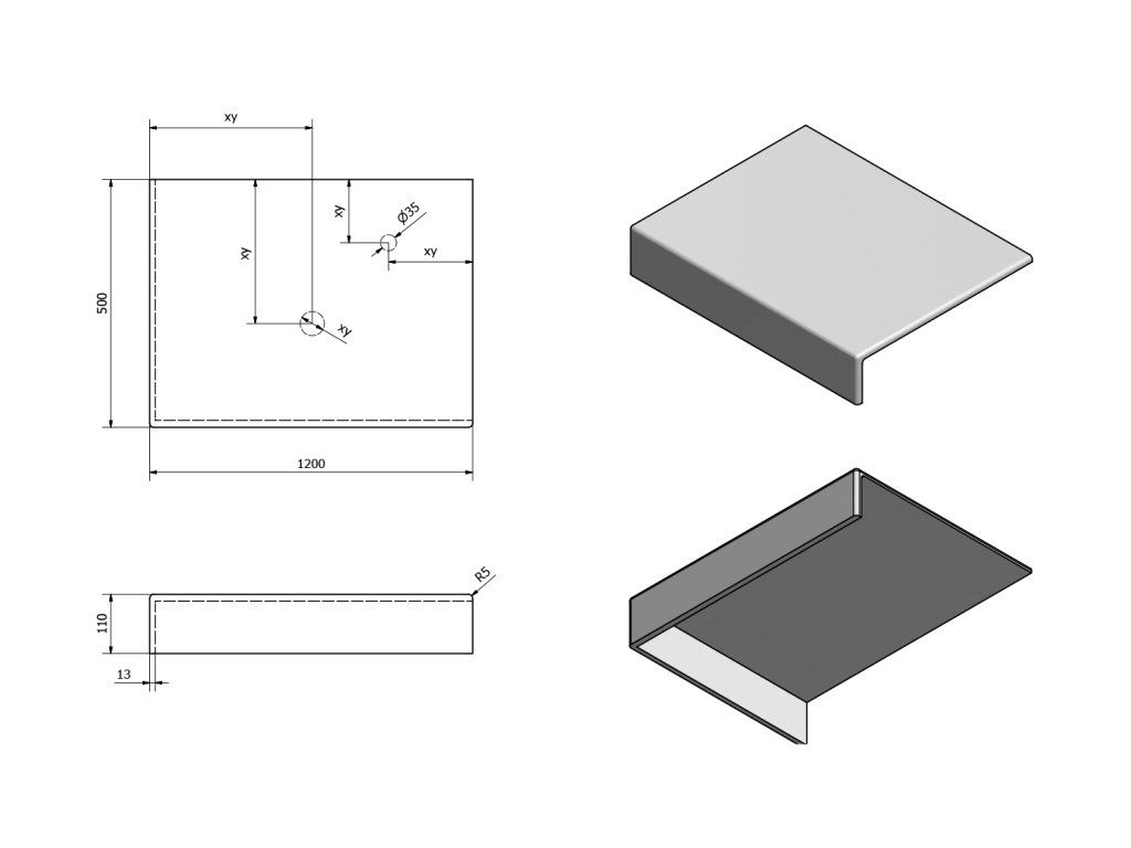 - Možnost dodání s otvory pro baterii a odpad dle výkresu (lze vrtat i v místě instalace)