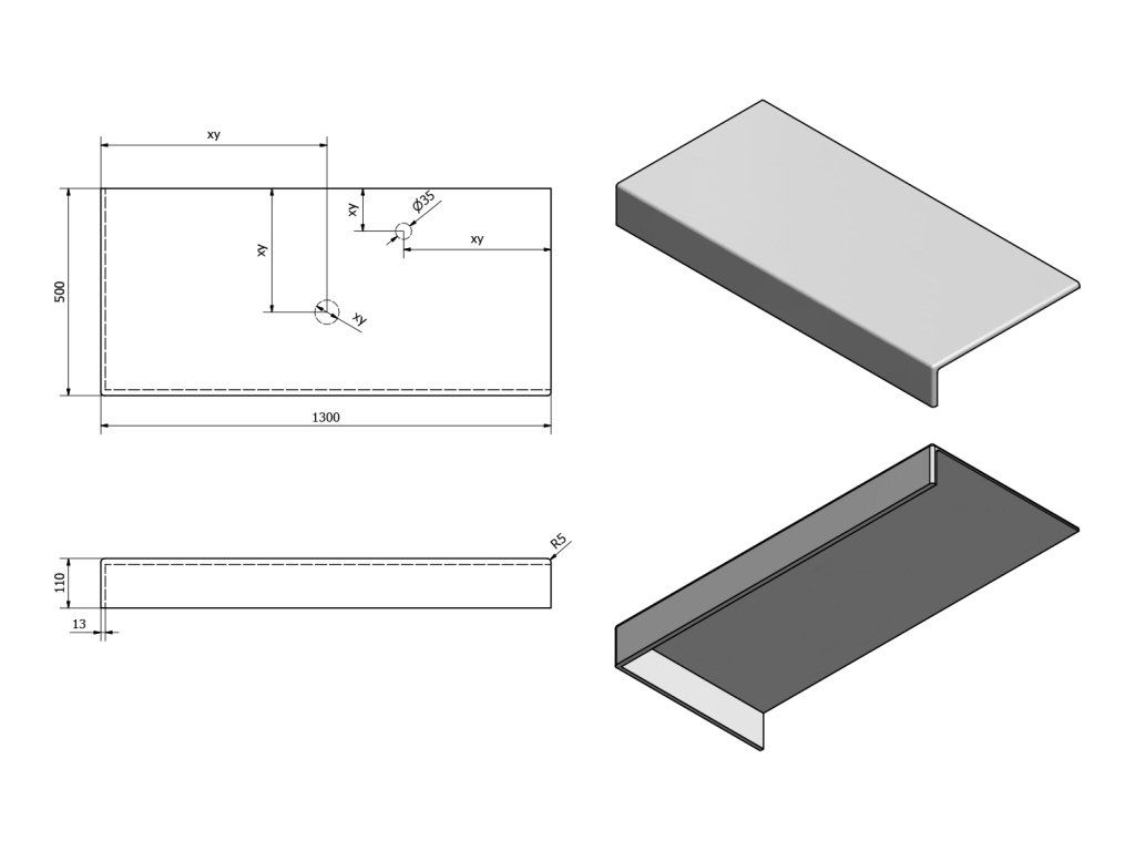 - Možnost dodání s otvory pro baterii a odpad dle výkresu (lze vrtat i v místě instalace)