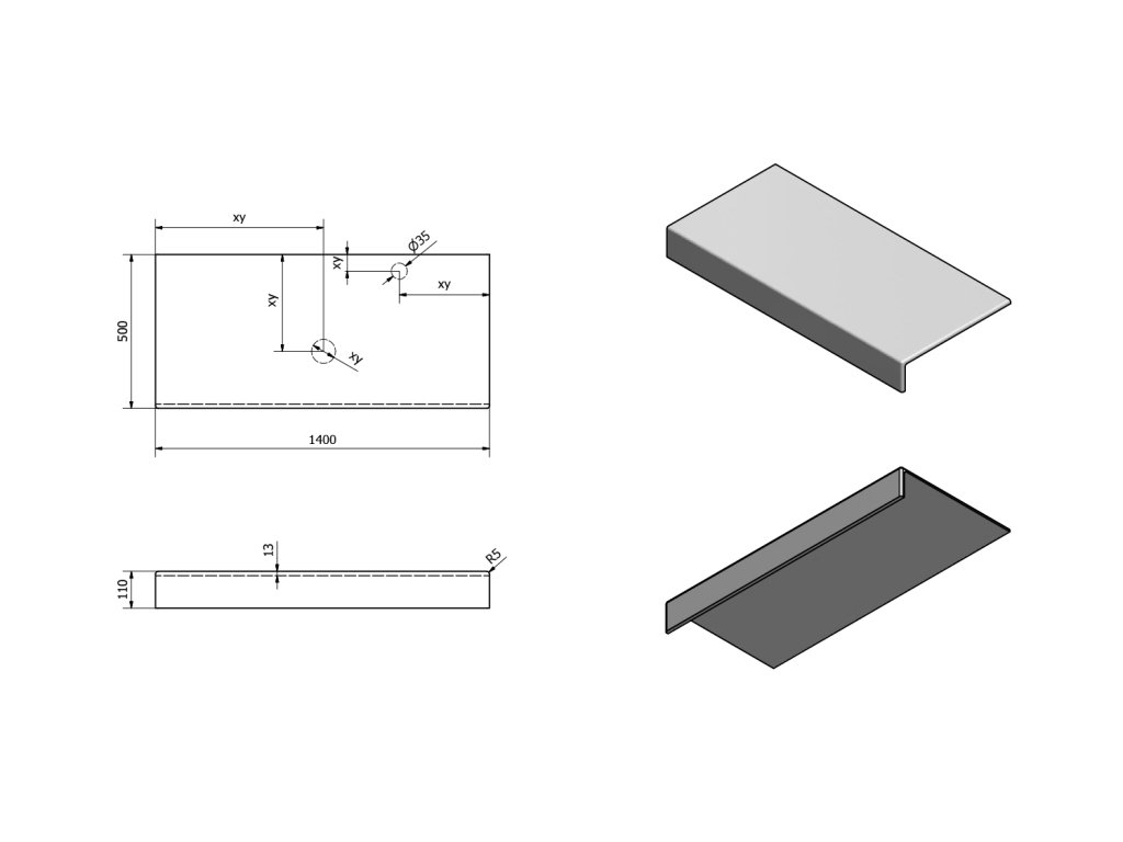 • Možnost dodání s otvory pro baterii a odpad dle výkresu (lze vrtat i v místě instalace)