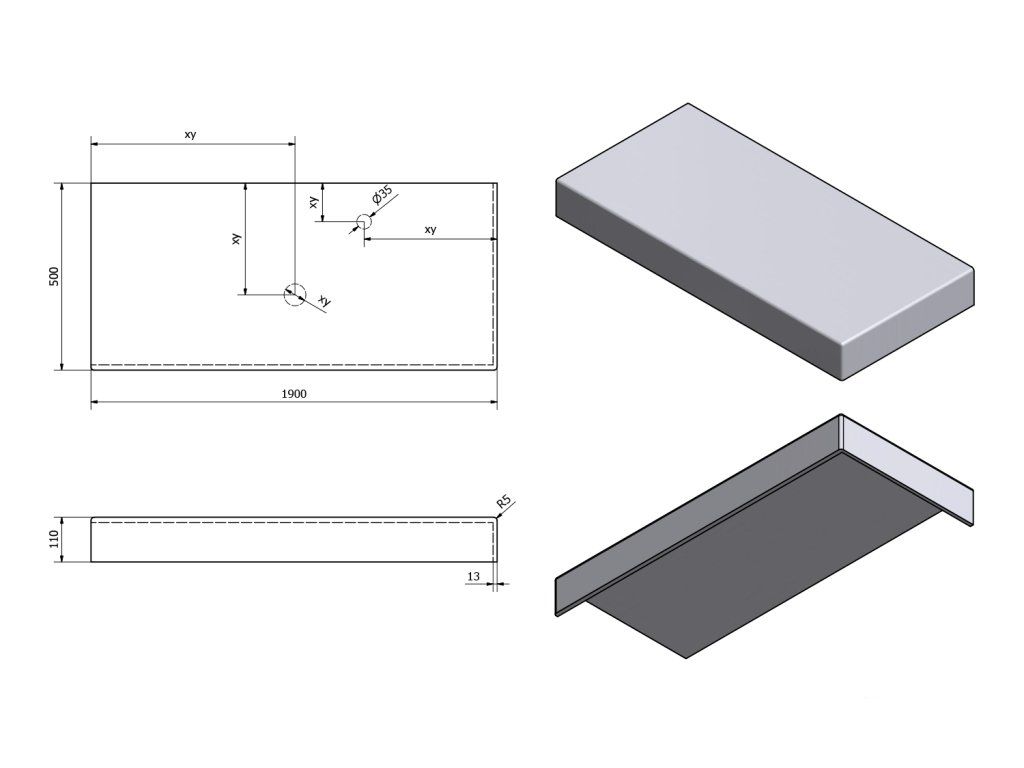 - Možnost dodání s otvory pro baterii a odpad dle výkresu (lze vrtat i v místě instalace)
