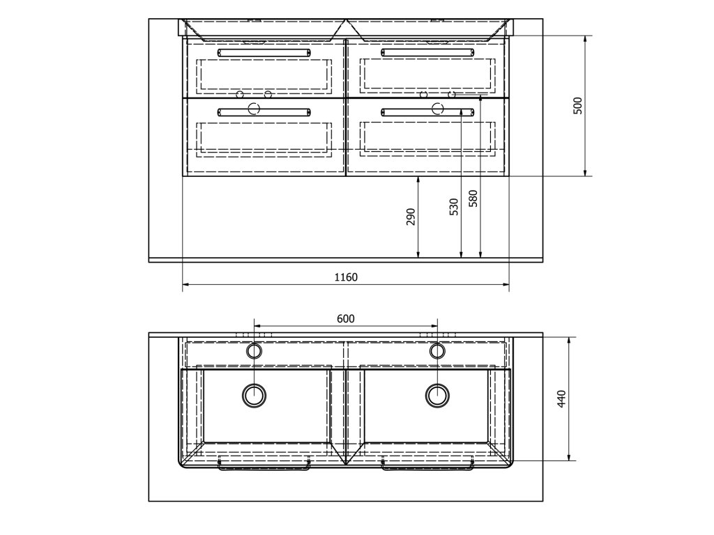 Sapho THEIA dvojumyvadlová skříňka 116x50x44,2cm, 4xzásuvka, bílá TH120-3030