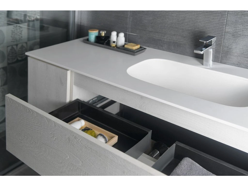 Nábytek nabízíme standardně ve 4 barevných variantách. Na výběr jsou zápustná umyvadla TREOS, polozápustná umyvadla BRAHEA nebo při použití desky umyvadla na postavení. Sérii lze doplnit o doplňkové skříňky ESPACE se závěsy BLUM a systémem TIP-ON. Do některých skříněk ESPACE lze dokoupit pratelný látkový prádelní koš na suchý zip nebo vnitřní zásuvku.