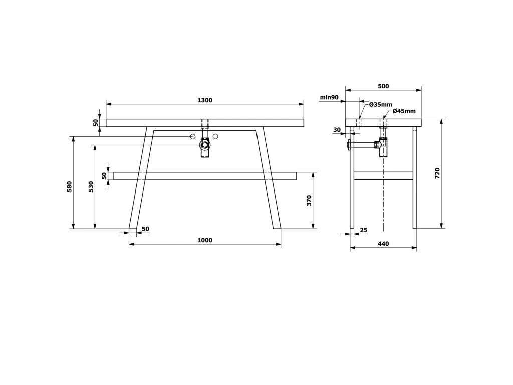 Stolek se skládá z ocelové podpěry TWIGA, horní desky AVICE o hloubce 50 cm a spodní desky (police) AVICE o hloubce 39 cm. Stolky o rozměrech 110 až 130 cm lze doplnit o zásuvku.