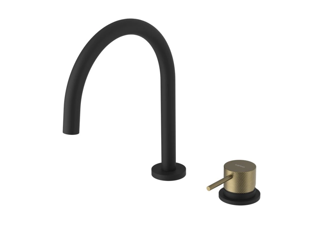 Sapho ULTRASAN dvouprvková stojánková umyvadlová baterie, černá mat/zlato mat UT019VBG