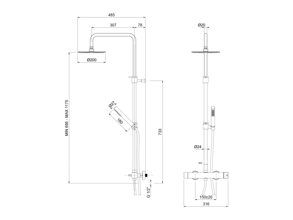 | Instalace: | Nástěnná 150 mm |