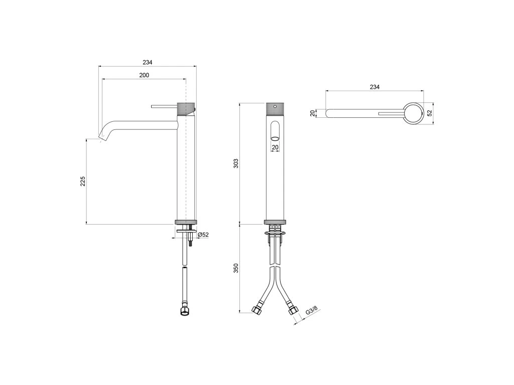 Sapho ULTRASAN stojánková umyvadlová baterie vysoká, prodloužená hubice, černá mat/chrom UT007VBC